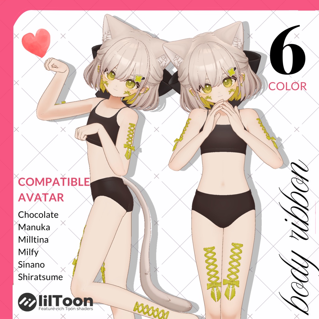 VRCでの使用を想定したオリジナルアバターになります。 ココナ、カリファ、リーシュとは別素体になります。 こちらにサンプルがござ...
