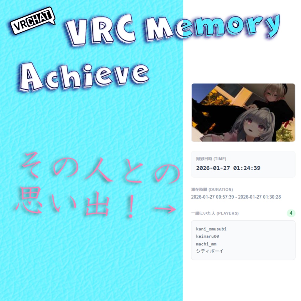 【7日無料配布】【VRChat写真整理ツール】VRC Memory Archive